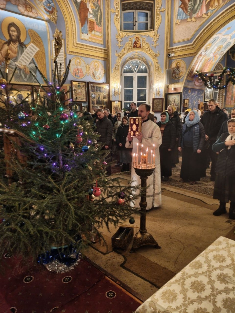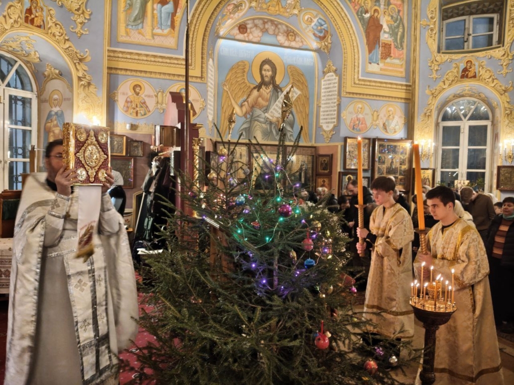 Ребят встретил настоятель храма протоиерей Александр Орлов. Священник рассказал о духовно-нравственном значении праздника Рождества Христова. Провел обзорную экскурсию храма. Ответил на вопросы учеников.